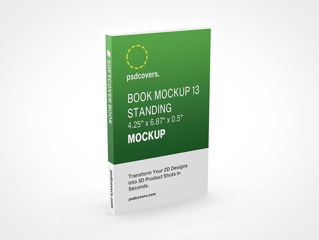 Our book mockup 13 visualizes your softcover artwork while standing on a flat surface. Measuring 108mm x 175mm (4.25in x 6.87in), this pocket book also features a paperboard cover and perfect binding spine. The length for this book mockup measures 13mm (0.5in) representing a 150-300 page count. Made for personal and commercial use, our high-resolution PSD softcover books are also ideal for visualizing your book cover templates and pocket book designs.