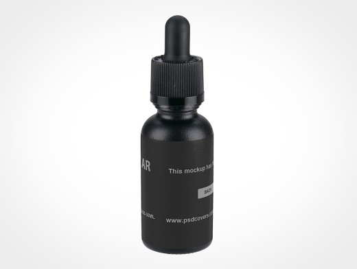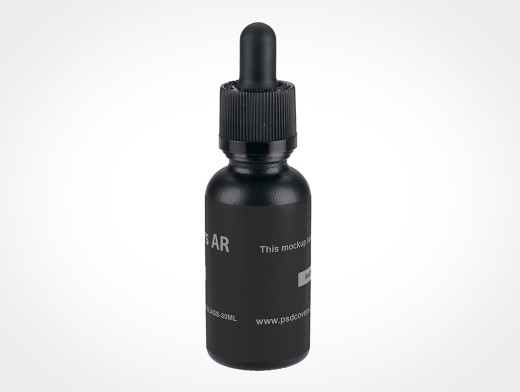 Our CBD oil bottle mockup 7 visualizes your cannabidiol designs while standing on a flat surface. Measuring 105mm tall, this black glass dropper bottle also features a black ribbed dropper cap with straight sides. The diameter for this CBD oil bottle mockup measures 33mm with a total weight of 30mL. Made for personal and commercial use, our high-resolution PSD bottles are also ideal for visualizing your cannabis templates and branding designs.