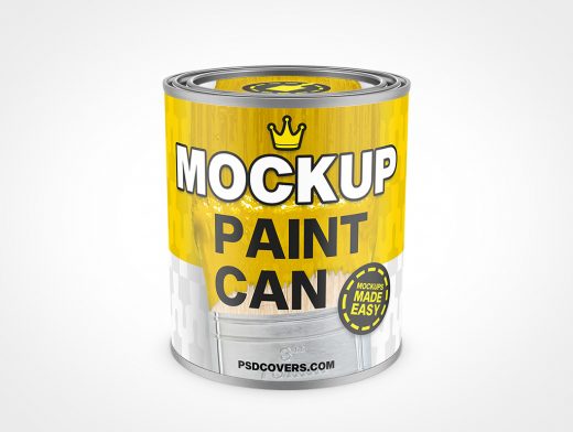 Our 1 gallon paint can mockup 24 visualizes your brand on a metal paint can from 30° looking down. Measuring 194mm in height, this can also features a carry handle and press-in lid. The diameter for this paint can measures 167mm representing a total volume of 3,78L (1 US gallon). Made for personal and commercial use, our high-resolution PSD cans are also ideal for visualizing your paint can label templates and branding designs.