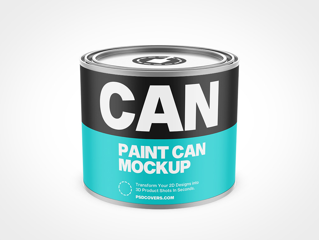 Our 22oz paint can mockup 8 visualizes your branding on a metallic paint can standing on a flat surface°. Measuring 89mm in height, this can does not feature a carry handle but does have a press-in lid. The diameter for this paint can mockup measures 108mm representing a total volume of 650mL (US one pound). Made for personal and commercial use, our high-resolution PSD cans are also ideal for visualizing your paint can label templates and branding designs.
