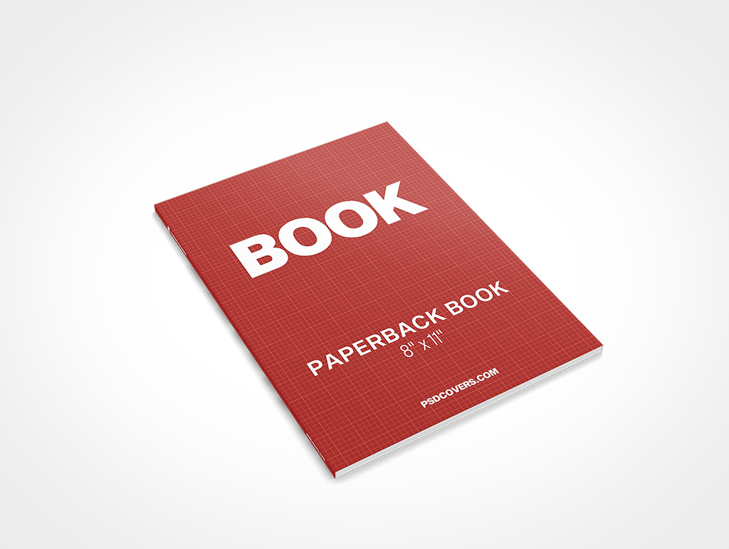 Our cover book mockup 366 visualizes your softcover artwork while faceup on a flat surface. Measuring 203mm x 279mm (8in x 11in), this nonstandard book also features a paper cover and perfect binding spine. The length for this cover book mockup measures 6.4mm (0.25in) representing a 50-125 page count. Made for personal and commercial use, our high-resolution PSD softcover books are also ideal for visualizing your book cover templates and masthead book designs.