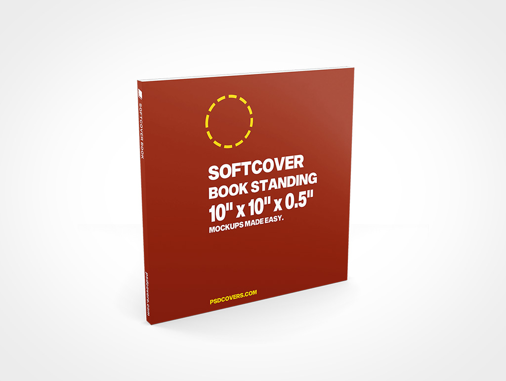 Our square book mockup 4213 visualizes your softcover artwork while standing on a flat surface. Measuring 254mm x 254mm (10in x 10in), this Square Book also features a paperboard cover and perfect binding spine. The length for this square book mockup measures 13mm (0.5in) representing a 150-300 page count. Made for personal and commercial use, our high-resolution PSD softcover books are also ideal for visualizing your book cover templates and A-format book designs.