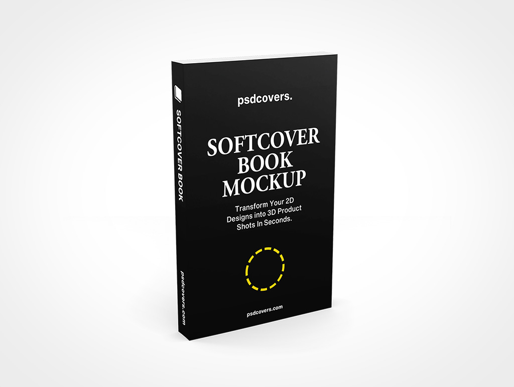 Our book mockup 1219 visualizes your softcover artwork while standing on a flat surface. Measuring 127mm x 203mm (5in x 8in), this Novel book also features a paperboard cover and perfect binding spine. The length for this book mockup measures 19mm (0.75in) representing a 250-350 page count. Made for personal and commercial use, our high-resolution PSD softcover books are also ideal for visualizing your book cover templates and A-format book designs.